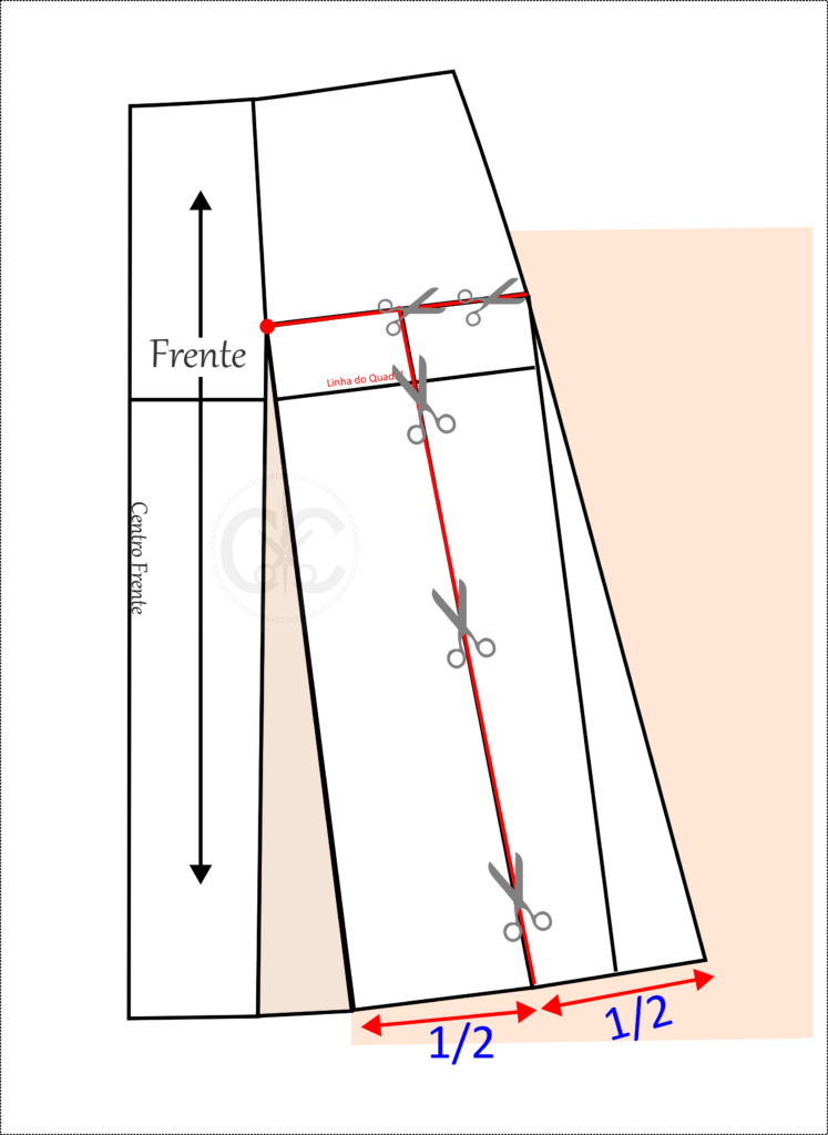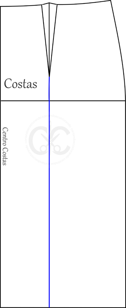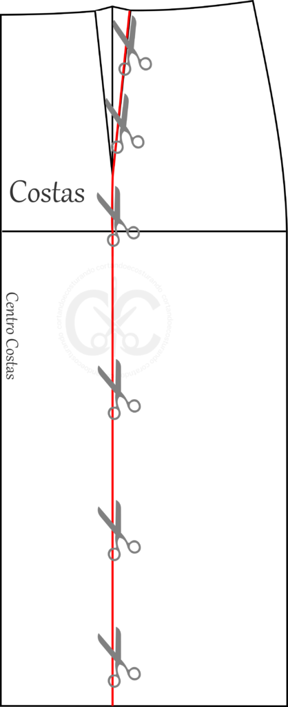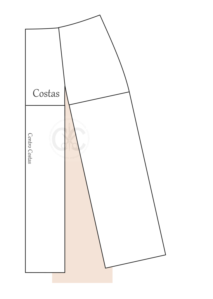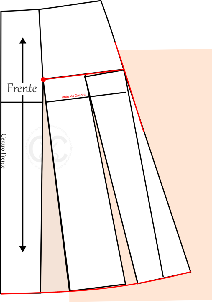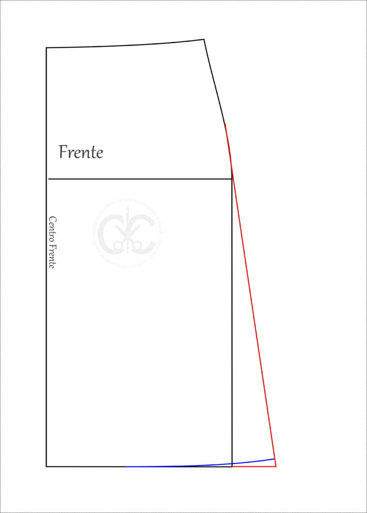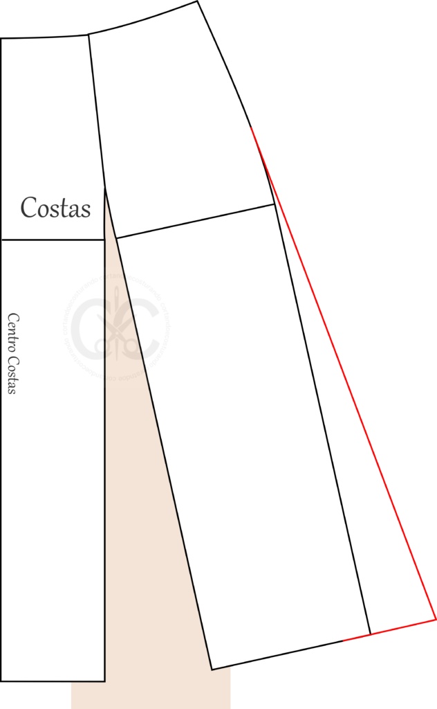 • Recorte seguindo essa linha, da barra até a cintura, contornando a lateral da pence.
