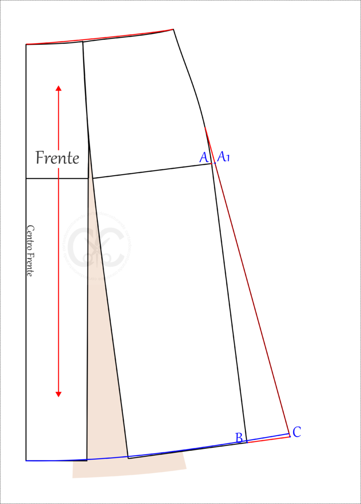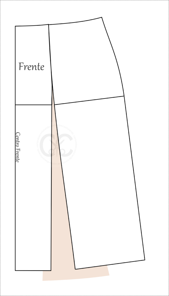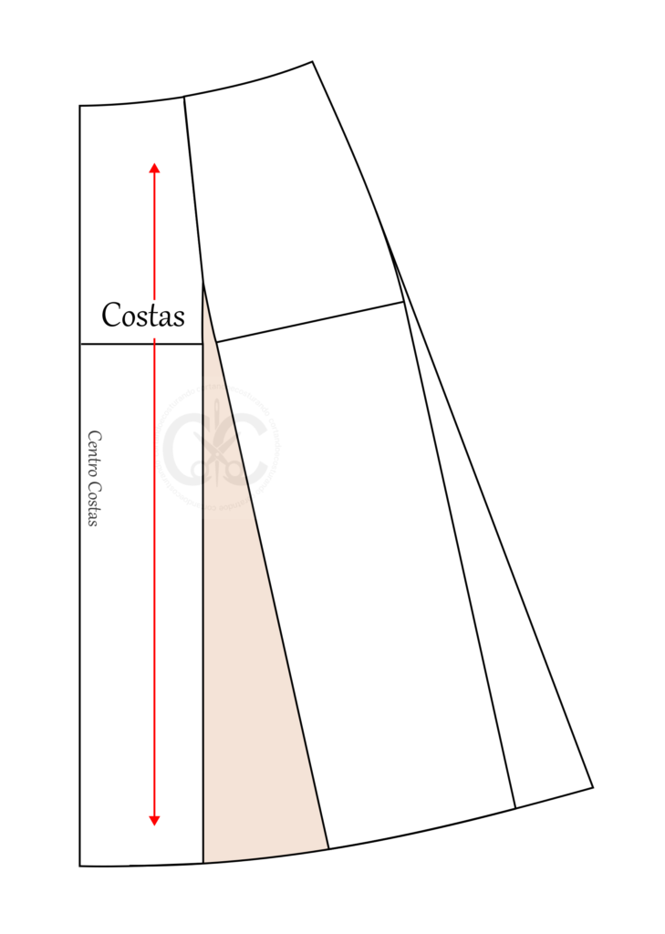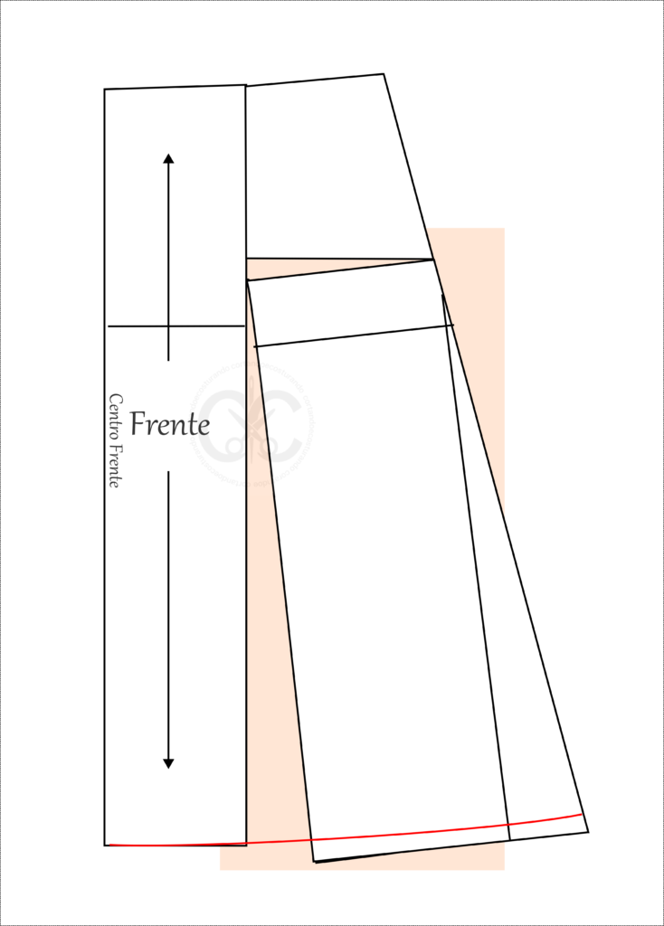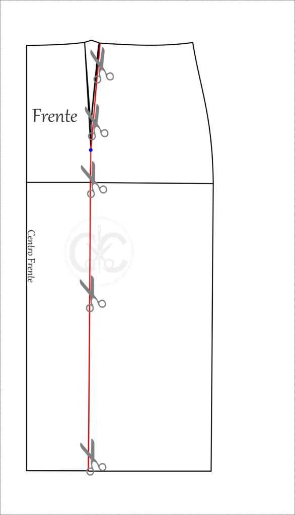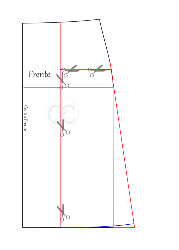 • Recorte seguindo essa linha, da barra até a cintura, contornando a lateral da pence.