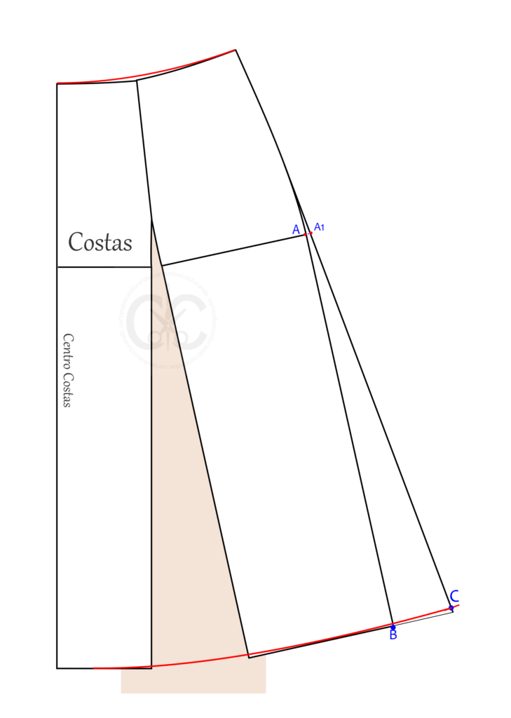 • Transfira essa mesma medida do ponto A1 até C para evitar bicos na lateral.
