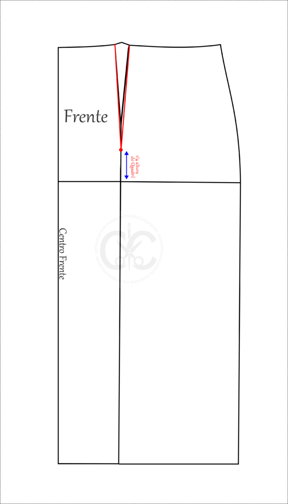 • (Meça 3/4 da altura do quadril para cima — esse será o ponto final da pence.)