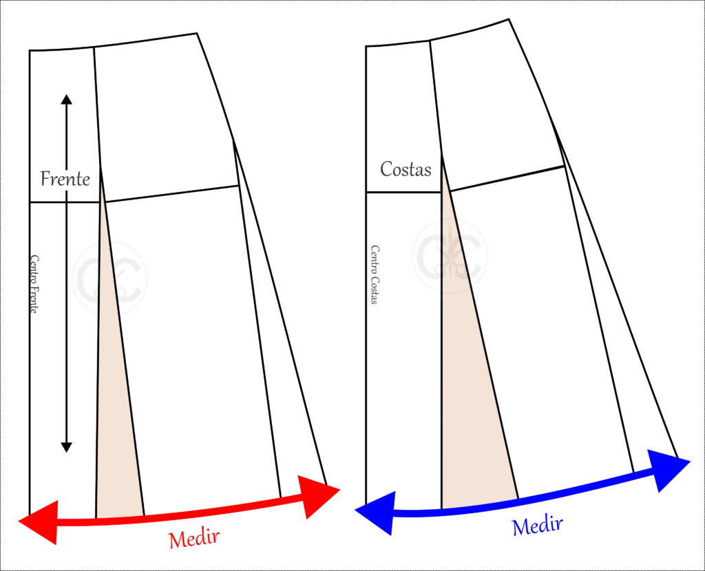 • Meça do quadril para cima cm 1/4 da altura do quadril e trace um alinha paralela a linha do quadril em direção a lateral.